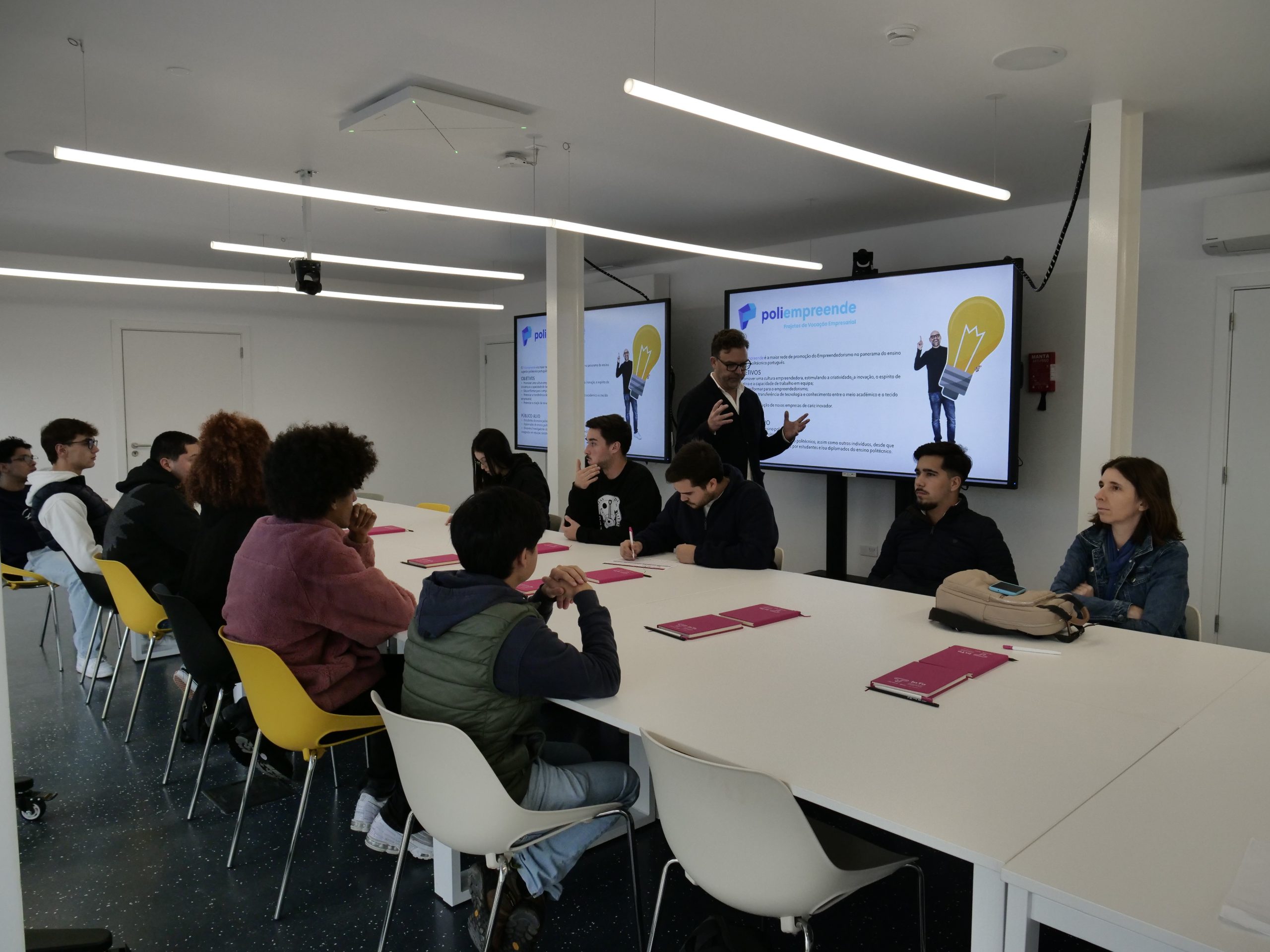 A iniciativa teve como objetivo divulgar o Poliempreende, dando a conhecer o regulamento, as etapas de candidatura e alguns exemplos de projetos que se destacaram em edições anteriores.